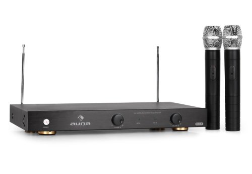 Ⓓ Auna Ensemble de 2 micros sans fil et 1 récepteur avec XLR/jack pour la scène, les enceintes PA, les chants et discours, jack 6,3 mm, prise stéréo XLR, VHF 2 canaux, portée 100 m