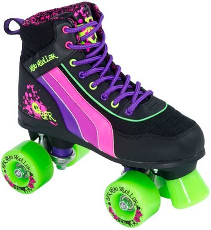 Ⓑ SFR Rio Roller Crâne Noir/Rose/Vert patins à roulettes UK 4